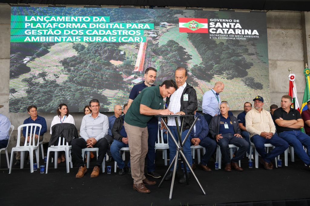 O governador de Santa Catarina, Jorginho Mello, lançou nesta terça-feira, 24, em Campos Novos, o CAR Digital, nova plataforma para gestão dos Cadastros Ambientais Rurais (CAR) no estado. A ferramenta vai reduzir cerca de 90% o tempo de análise dos cadastros. A partir de agora, os requerimentos, declarações ou cadastramentos que antes eram protocolados e analisados de forma manual, passam a ser 100% digitais e com funcionalidades que vão garantir mais transparência, agilidade nas análises, automatização de etapas, padronização dos fluxos de validação, redução do retrabalho nas análises e geração de dados completos.