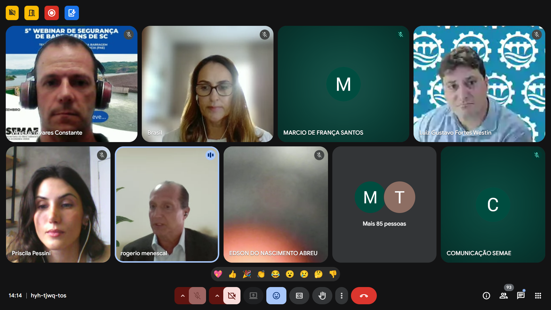Mais de 120 pessoas, entre gestores públicos, profissionais e empreendedores do segmento de barragens, estiveram reunidos na tarde desta quinta-feira, 04/12, para ampliar conhecimentos e trocar ideias no 5º Webinar Segurança de Barragens de Santa Catarina. O evento foi organizado pela Secretaria do Meio Ambiente e da Economia Verde, por meio das gerências de Saneamento e Gestão de Recursos Hídricos (GSRH) e de Outorga e Controle dos Recursos Hídricos (GEORH).